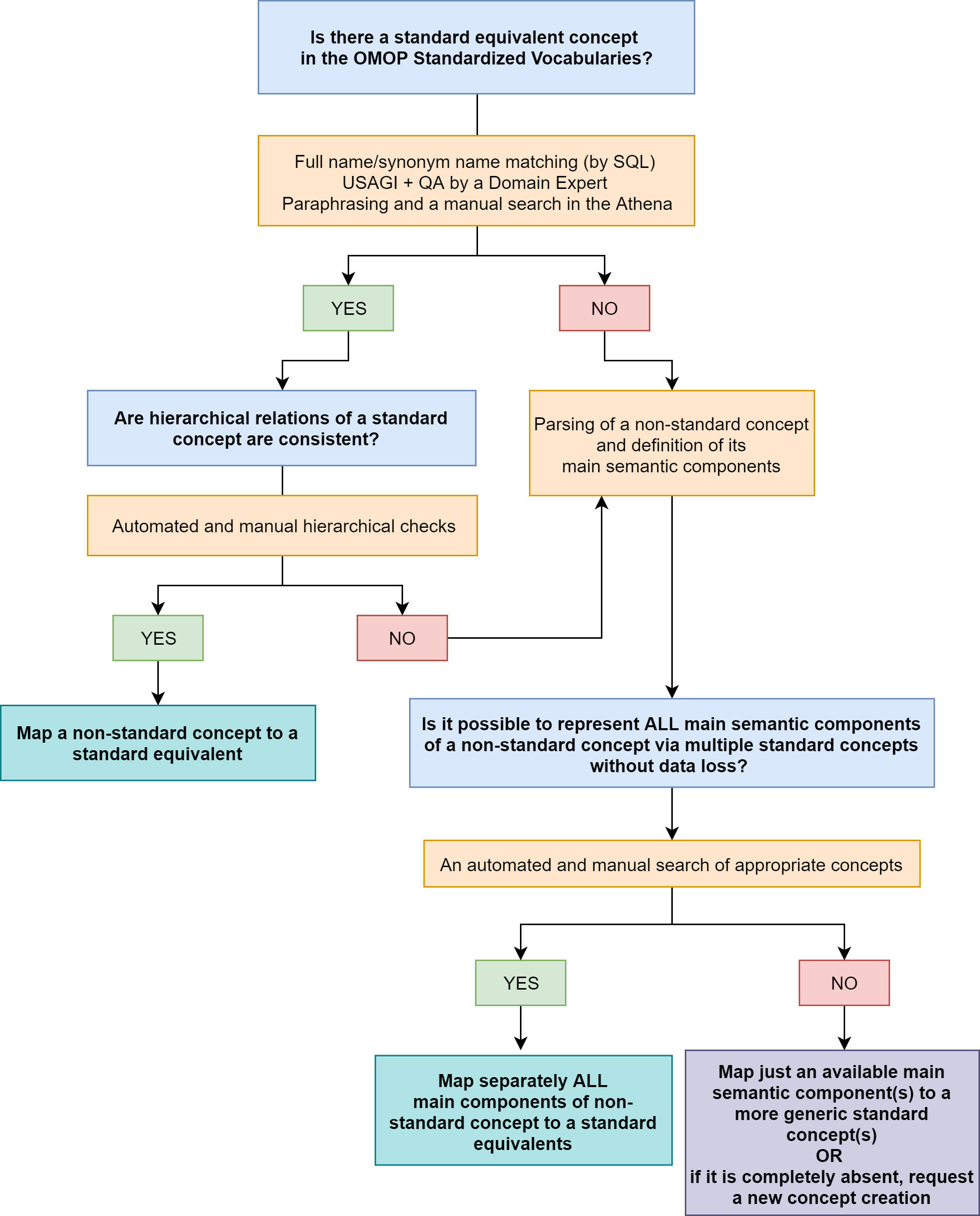 Maps to | Mapping a Source Concept to a Standard Concept to be placed into the following fields of Standardized Clinical Data Tables condition_concept_id observation_concept_id measurement_concept_id drug_concept_id procedure_concept_id device_concept_id Note, that this relationship is also used for mapping of concepts to populate value_as_concept_id |